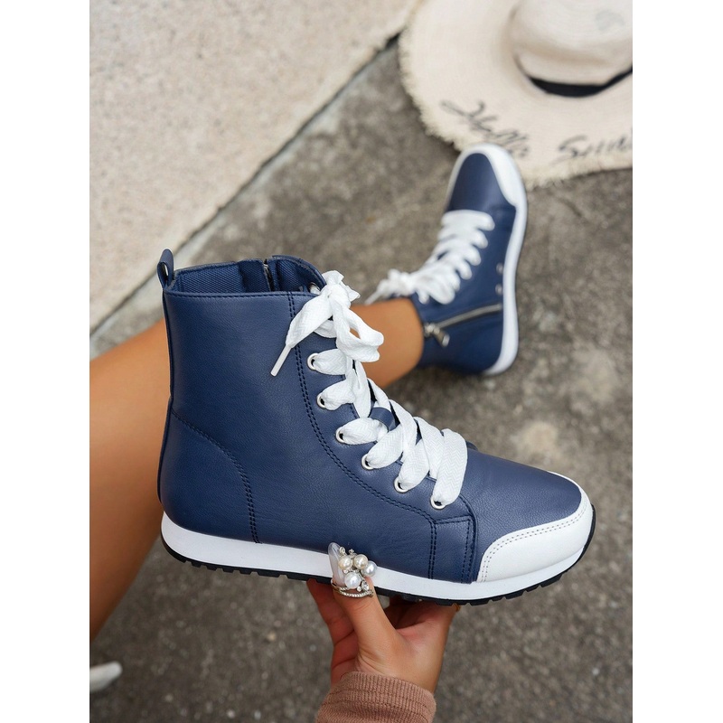 women 2024 New Style Women Fashion Casual Lace-Up Zip Side Mid-Calf Boots