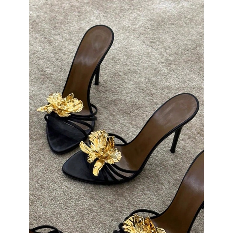 2025 Spring/Summer New Rhinestone Metallic Flower Open Toe Strap Buckle Sandals