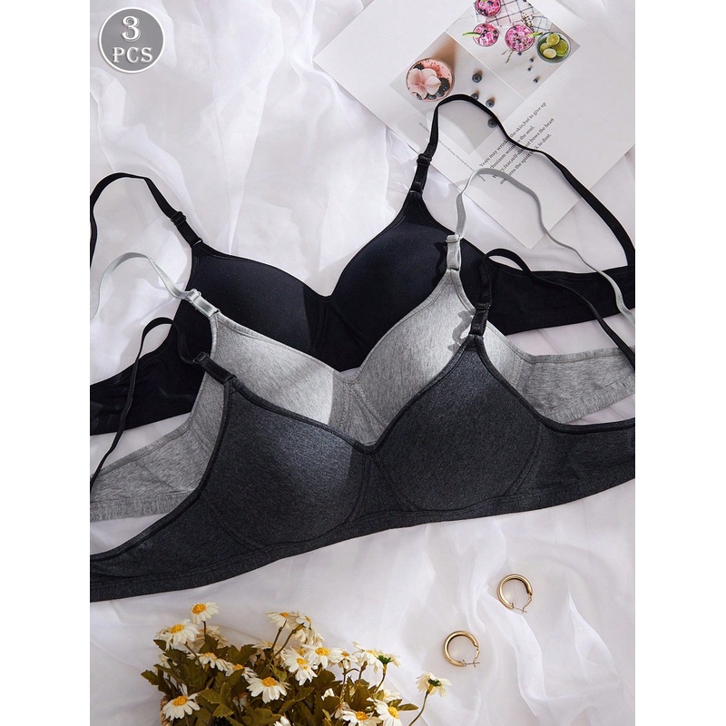 women 3PCS Lady’s Comfortable Sleep Multicolour Wireless Soft Cup For Small Chest Solid Underwear Bra
