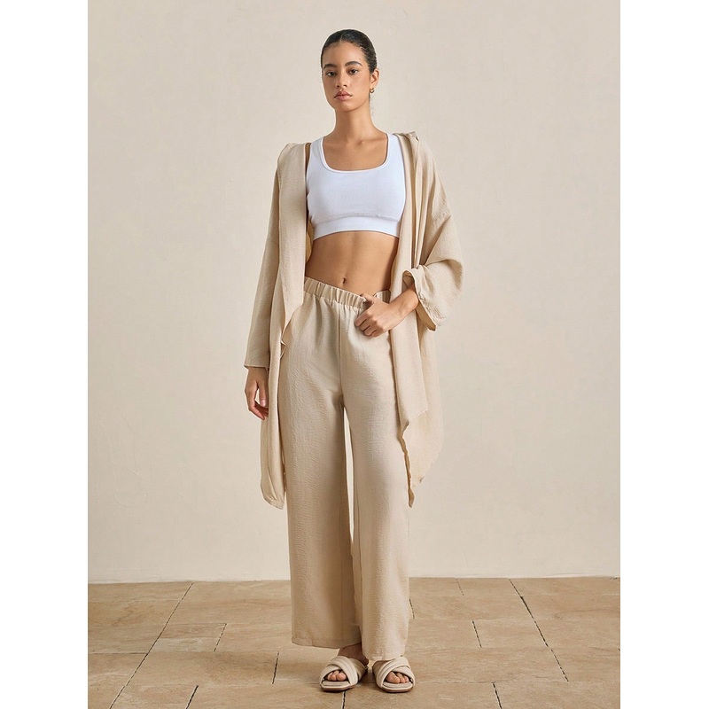 Airaco 2pcs/Set Women Vacation Casual Solid Color Hooded Top And Pants Set Fall Cloth For Women