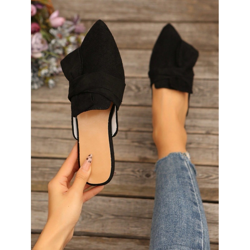 women Black Half Backless Mule Shoes