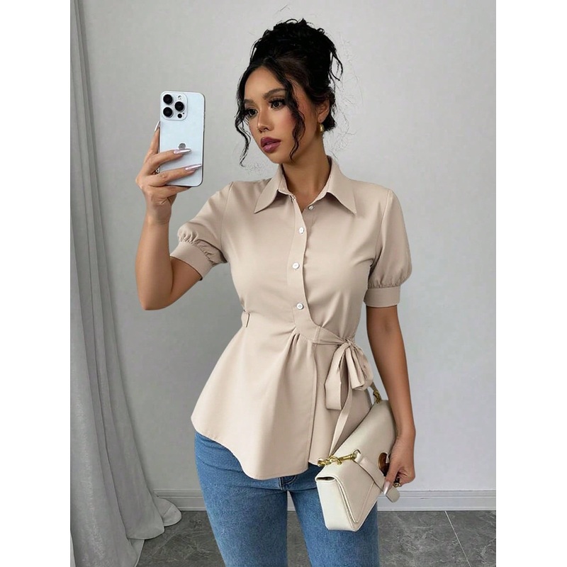 Chiquease Women’s Casual/Commute Solid Color Lace-Up Shirt