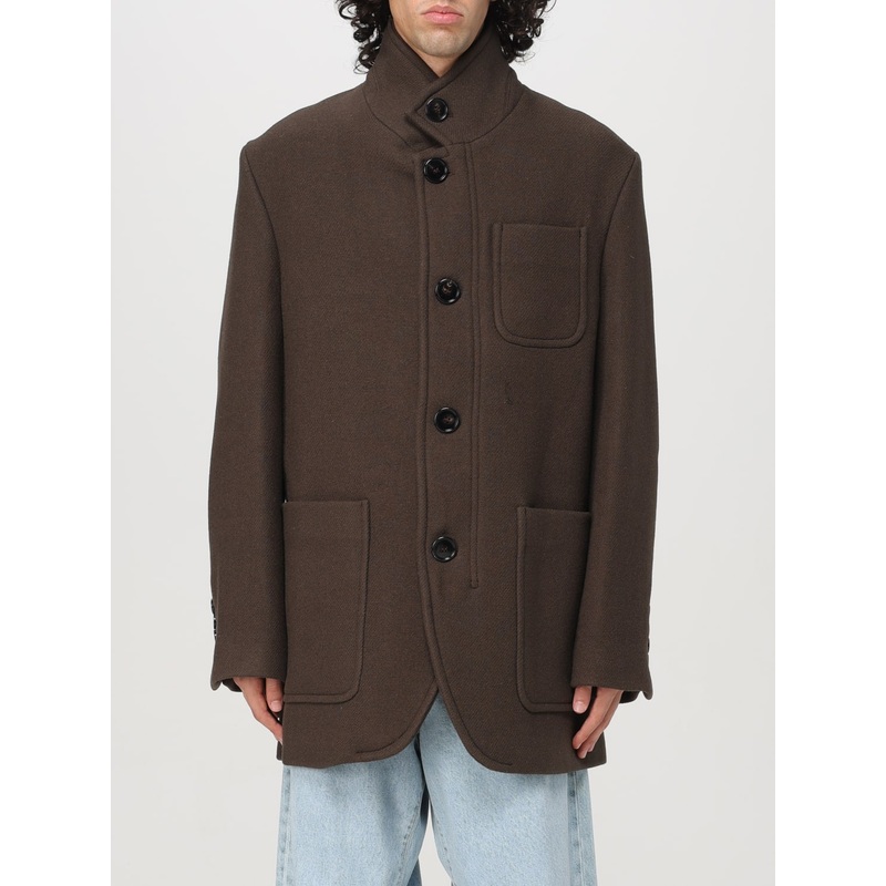 Neck: High Shoulders: Regular Sleeves: Long Closure: With buttons Pockets: Patch pocket Bottom: With straight hemline Materials: Virgin wool Pattern: Plain-colored