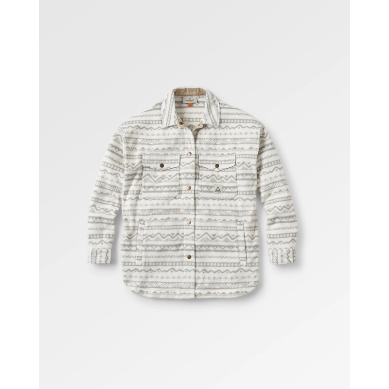 East Recyceltes Polar-Fleece-Hemd – Berg Geo Vintage Wei