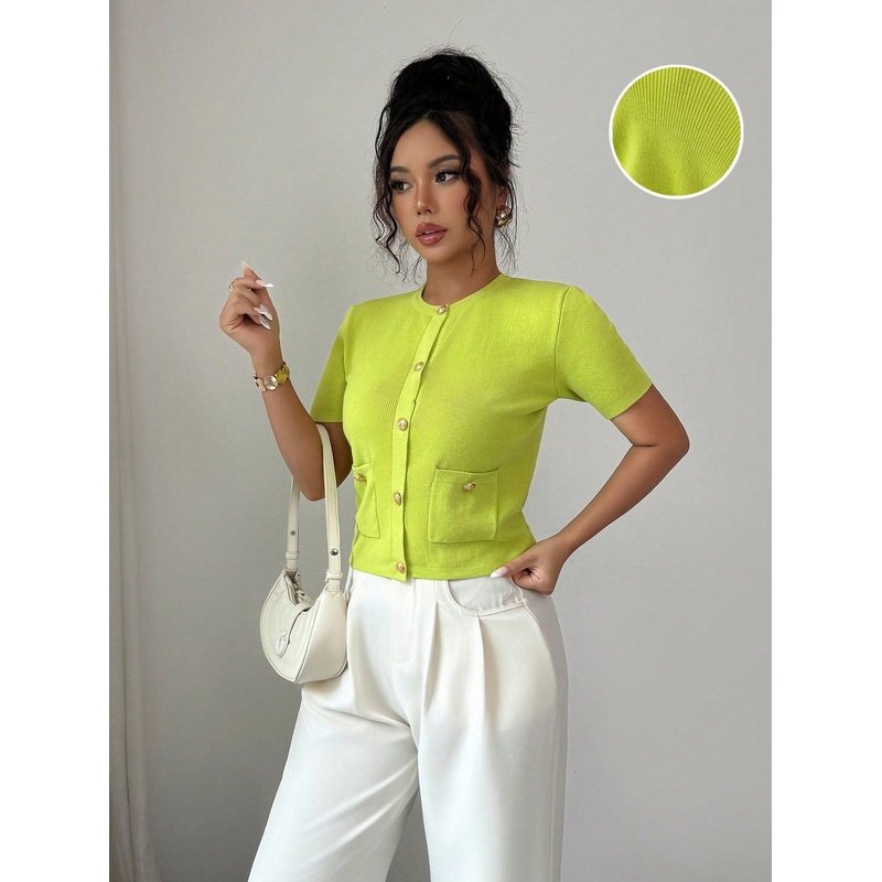 Elenzga Simple Solid Color Short Sleeve Cardigan, Casual Summer