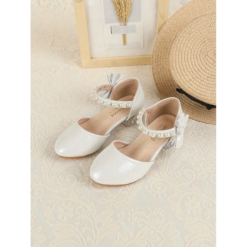 kids Girls” High Heels Crystal Heels Butterfly & Pearl Decor Hollow Out Sandals