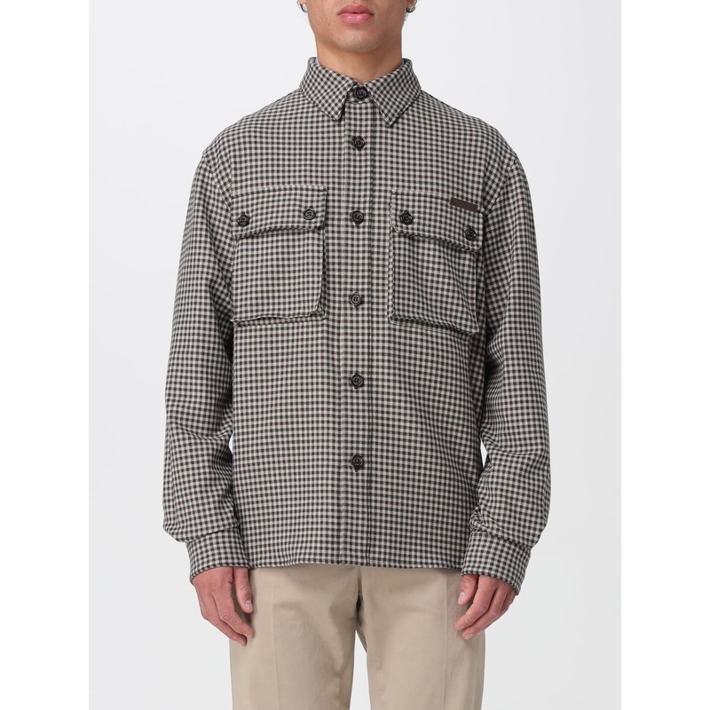 Style: Casual Model: Shirt Neck: Classic Shoulders: Relaxed Sleeves: Long Cuffs: 1-button Closure: With buttons Pockets: Patch pocket with flap and button Bottom: With straight hemline Logo: With logo Length: Short jackets Materials: Wool blend Pattern: Ch