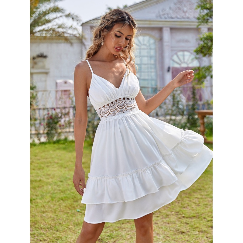 SHH-5264-DXMILace Insert Layered Hem Cami Dress