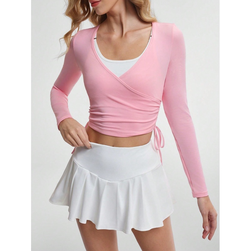 Lifespree Women's Simple Solid Color Lace-Up Wrap Sports T-Shirt
