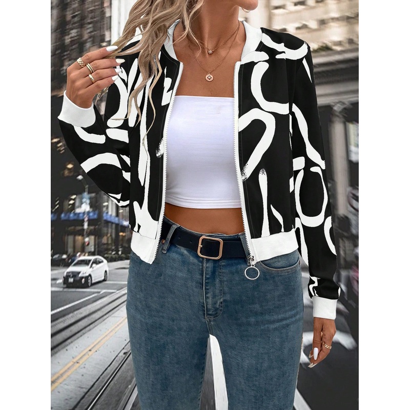 LUNE Women Printed Long Sleeve Zipper Jacket, Suitable For Spring Fall Winter Cloth For Women