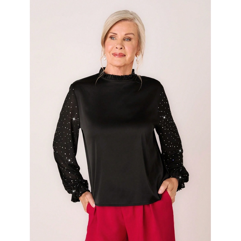 LUNE Women's Stand Collar Long Sleeve Solid Color Patchwork Casual Shirt