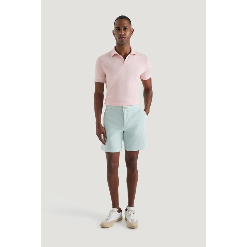The Farrelly Dobby Side Tab Short is cut in a Regular Fit from an exclusive M.J. Bale cotton blend dobby cloth, woven with ELS yarns on vintage looms for a soft yet durable finish. Designed with a five-pocket construction and side tabs, it includes two slanted front pockets, two back jet pockets and a front ticket pocket. Pre-washed with a vintage finish, the short is completed with tonal heavy stitching, reinforced seams, branded pewter hardware, and a constructed waistband lined with seasonal printed fabric. A versatile staple with sartorial detailing that is engineered for long weekends, city summers, and escapes beyond.
