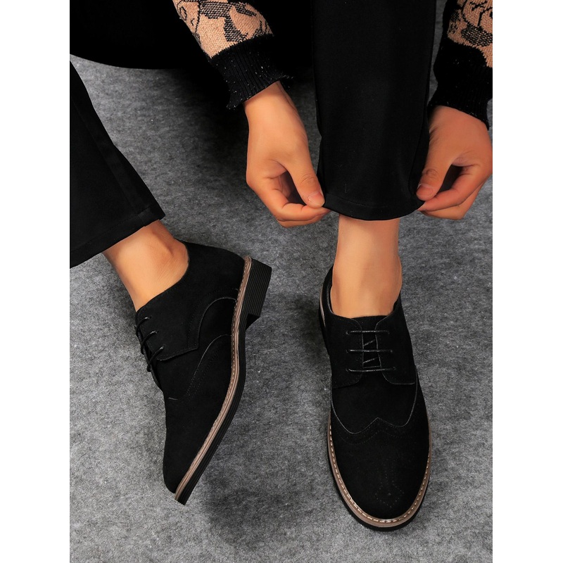 men Men’s Lightweight Matte Block Carved Round Toe Lace-Up Low-Heel Leather Shoes For Casual