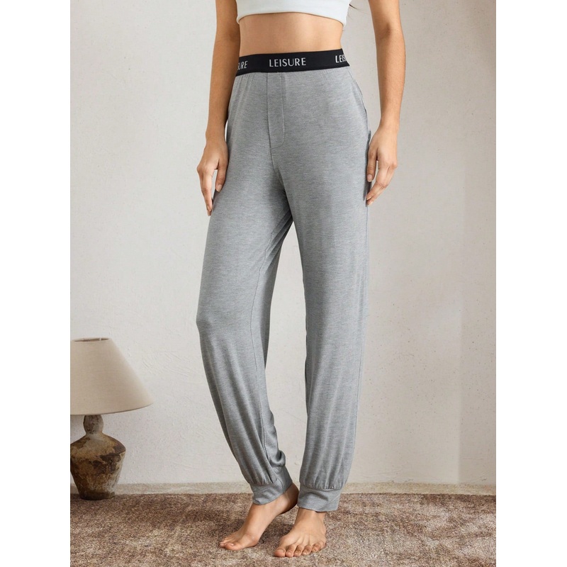 Ocili Leisure Women Solid Color Patchwork Letter Print Detail Casual Lounge Pants