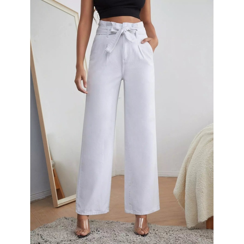 SHH-2792-TOZYPaperbag Waist Self Wide Leg Jeans Without Belt