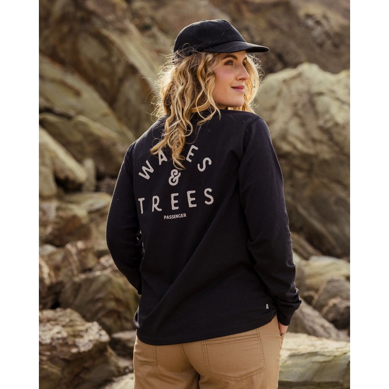 Penida recyceltes Baumwoll-Langarmshirt – Schwarz