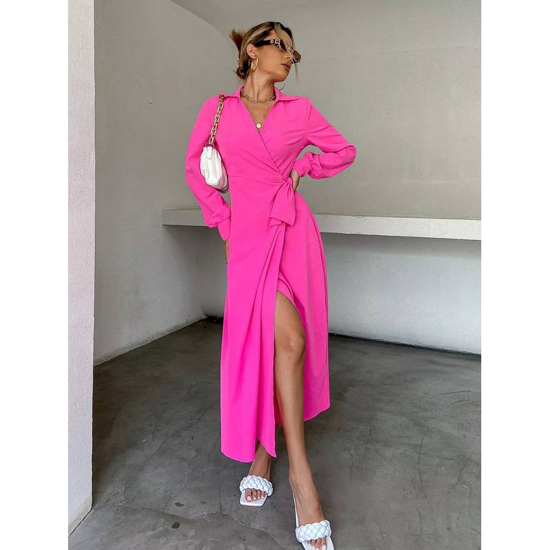 SHH-5980-GSQKSolid Wrap Tie Side Dress|S