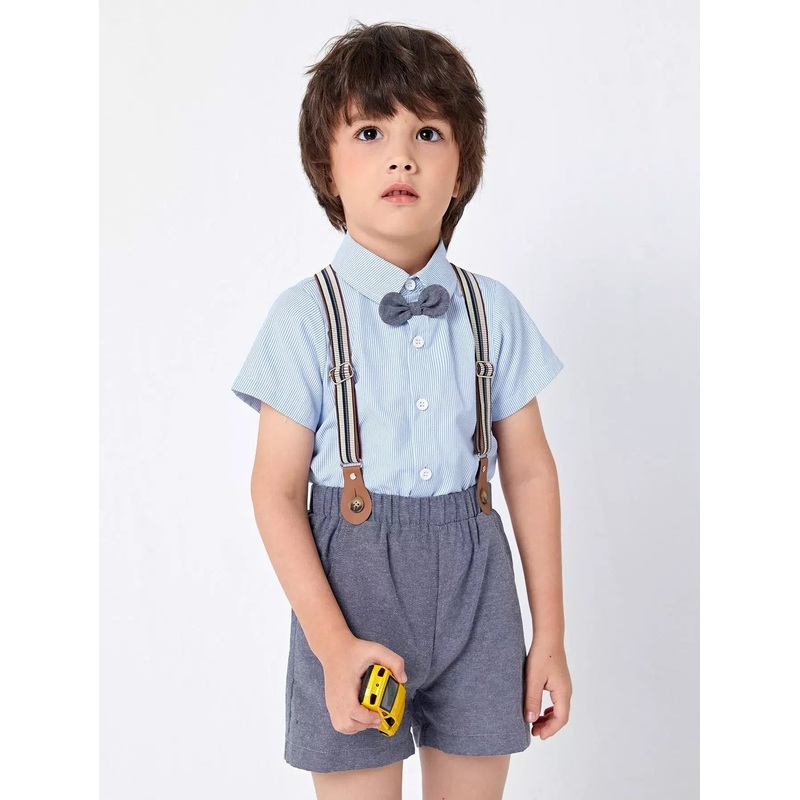 SHH-4344-INLOToddler Boys Striped Print Bow Neck Shirt With Pinafore Shorts